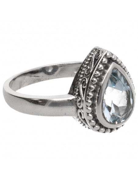Anillo Bohemio de Topacio Azul en Plata de Ley 925
