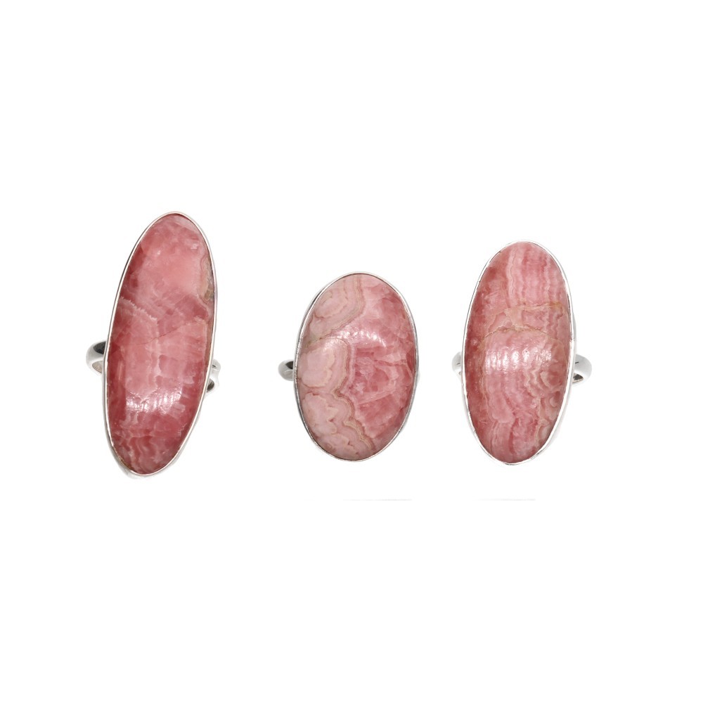 Anillo Óvalo de Rodocrosita Aleatorio en Plata de Ley 925