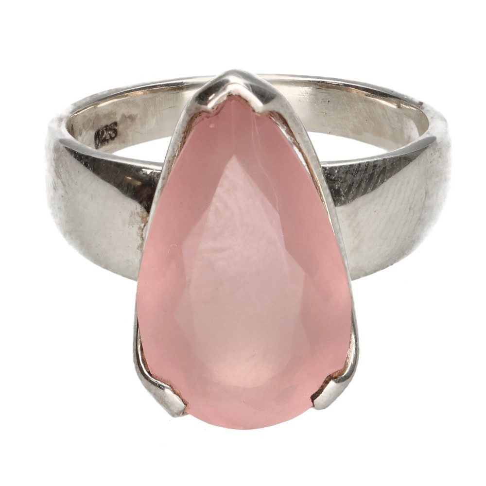 Anillo de Cuarzo Rosa Facetado en Plata de Ley 925 (86Q)