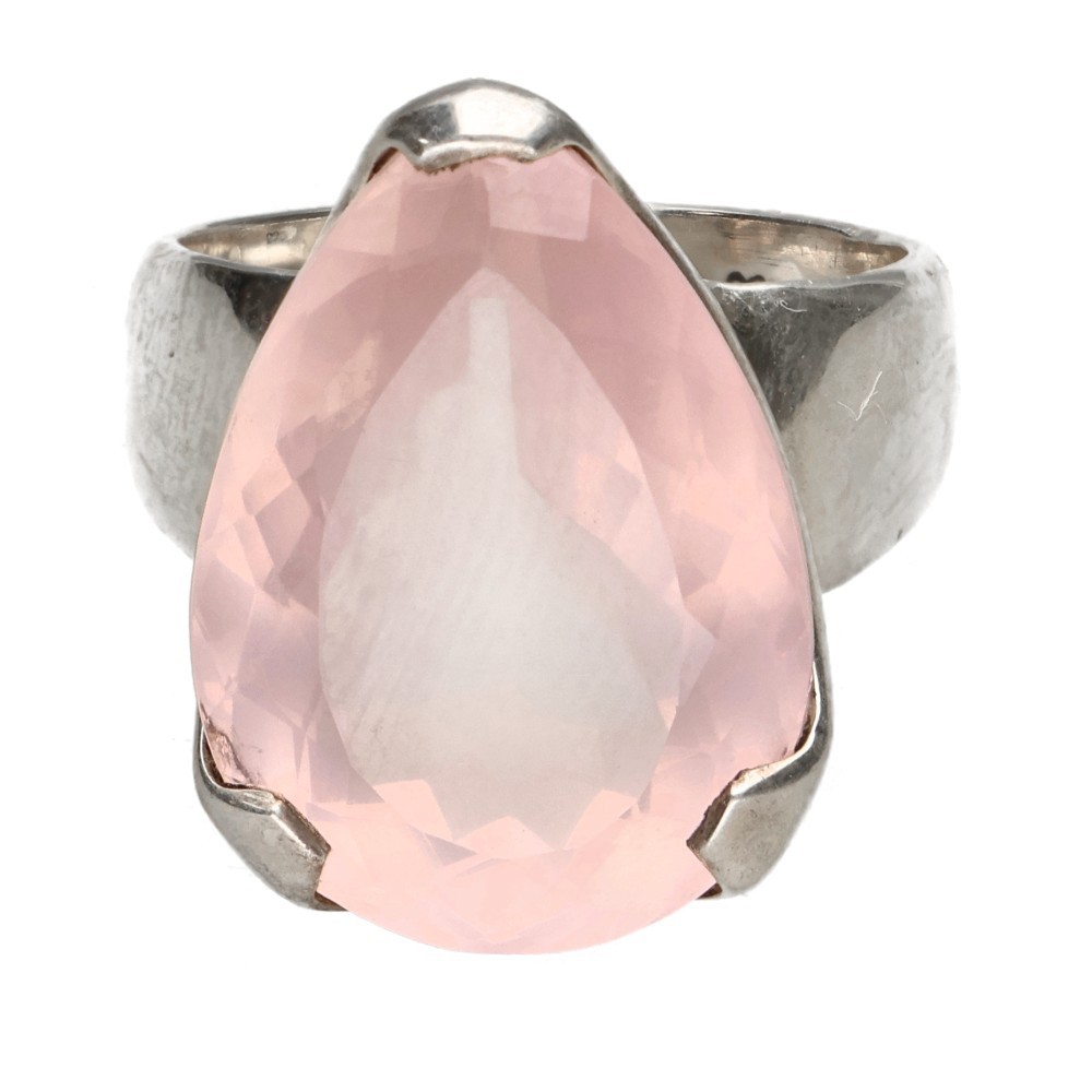 Anillo de Cuarzo Rosa Facetado en Plata de Ley 925 (89Q)