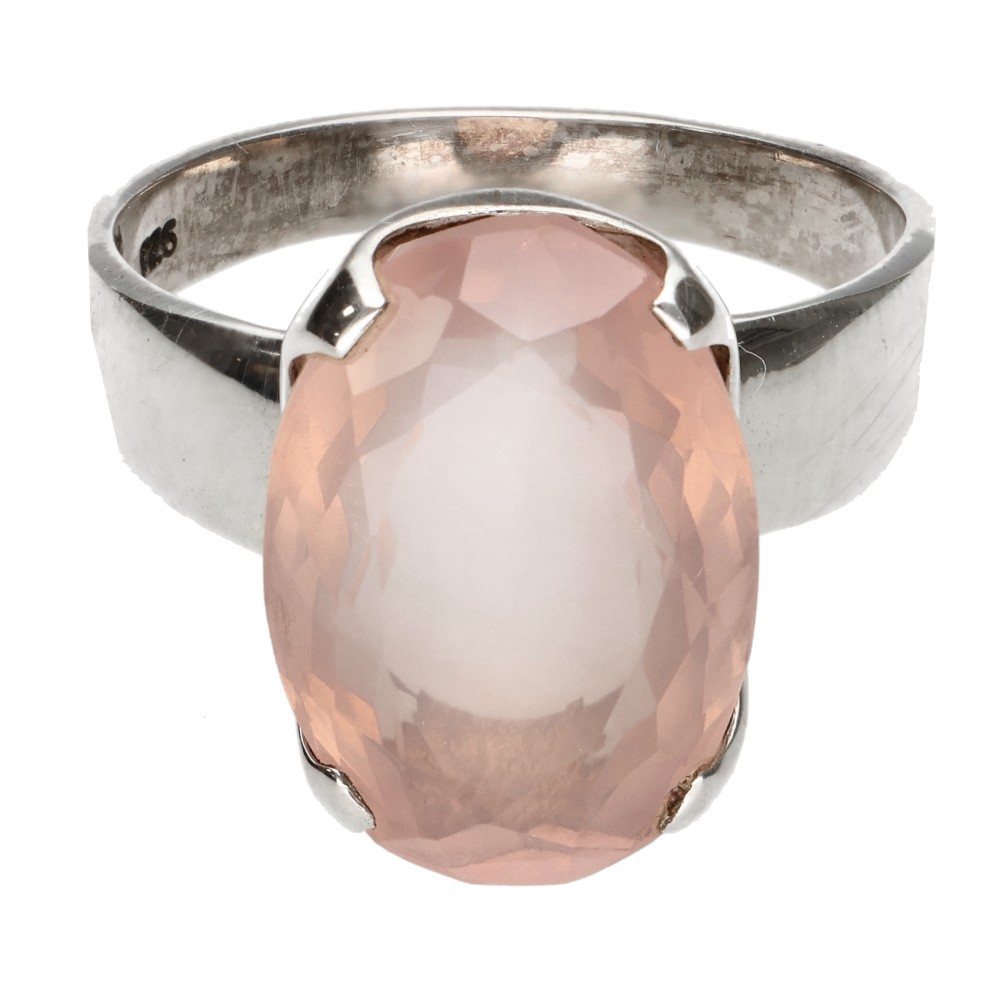 Anillo de Cuarzo Rosa Facetado en Plata de Ley 925 (92Q)