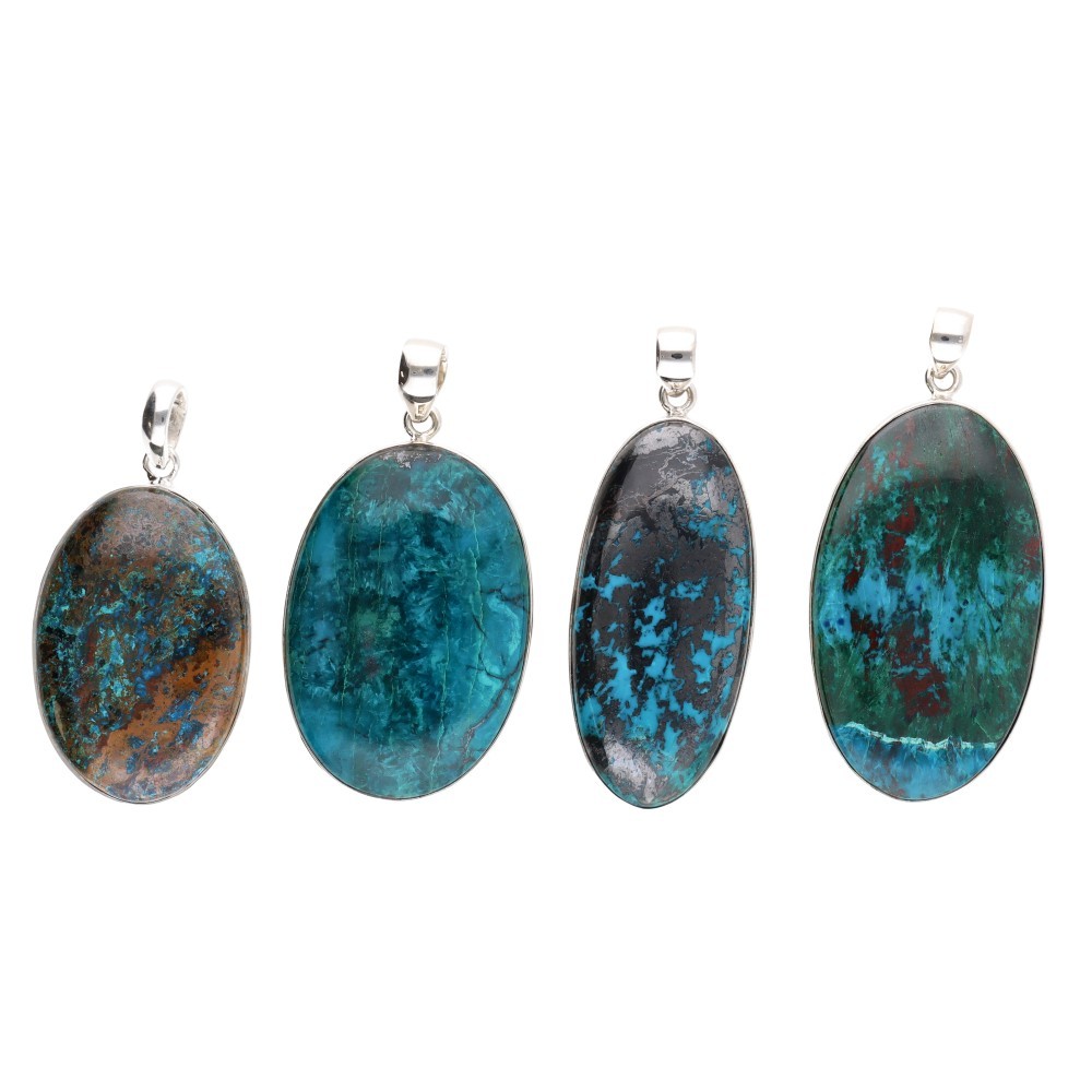 Colgante Óvalo de Crisocola Aleatorio en Plata de Ley 925