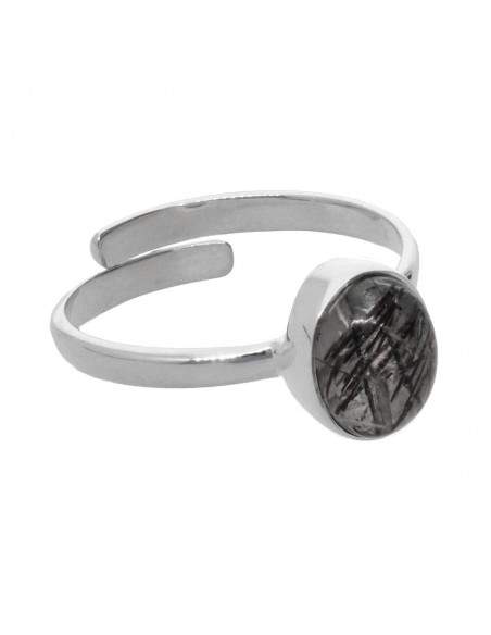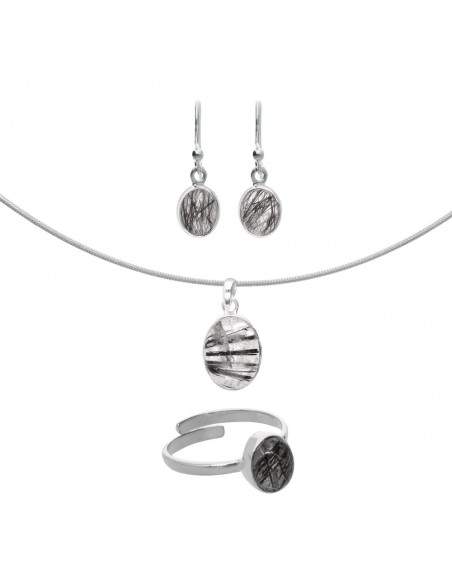 Conjunto Óvalo de Cuarzo Turmalinado en Plata de Ley 925