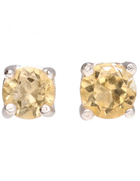 925 Sterling Silver Faceted Citrine Mini Circle Button Earrings
