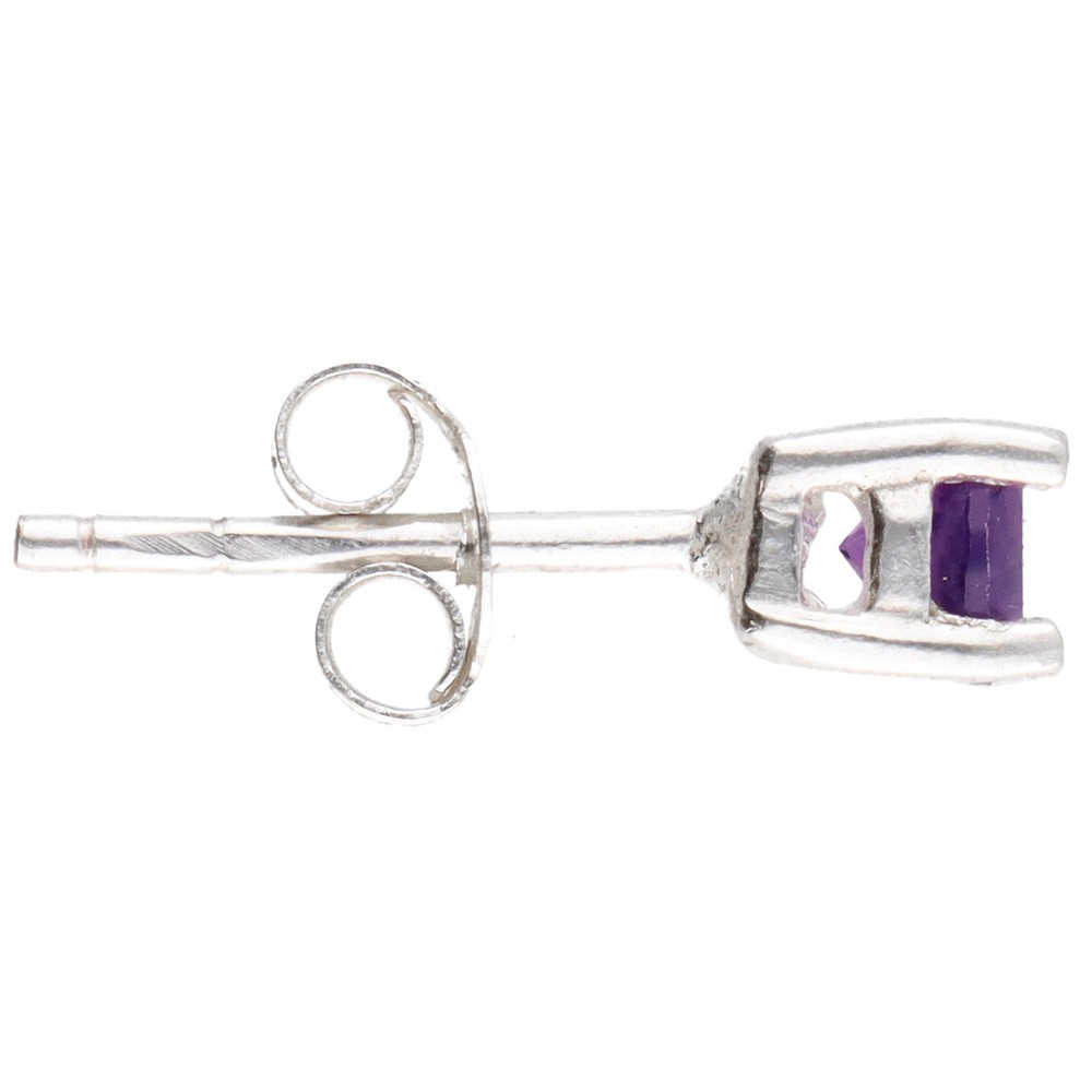 925 Sterling Silver Faceted Amethyst Mini Circle Button Earrings