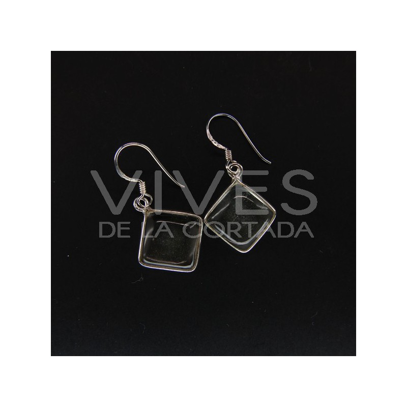Large Plain Cube Quartz Earrings - Sterling Silver 925