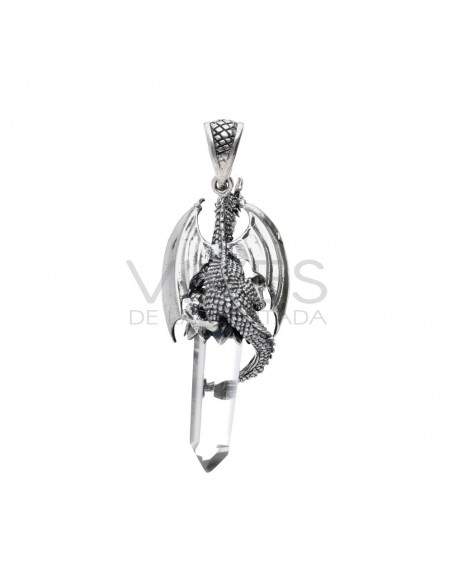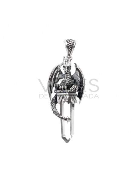 Open Wings Dragon Pendant on M Quartz Point in 925 Sterling Silver