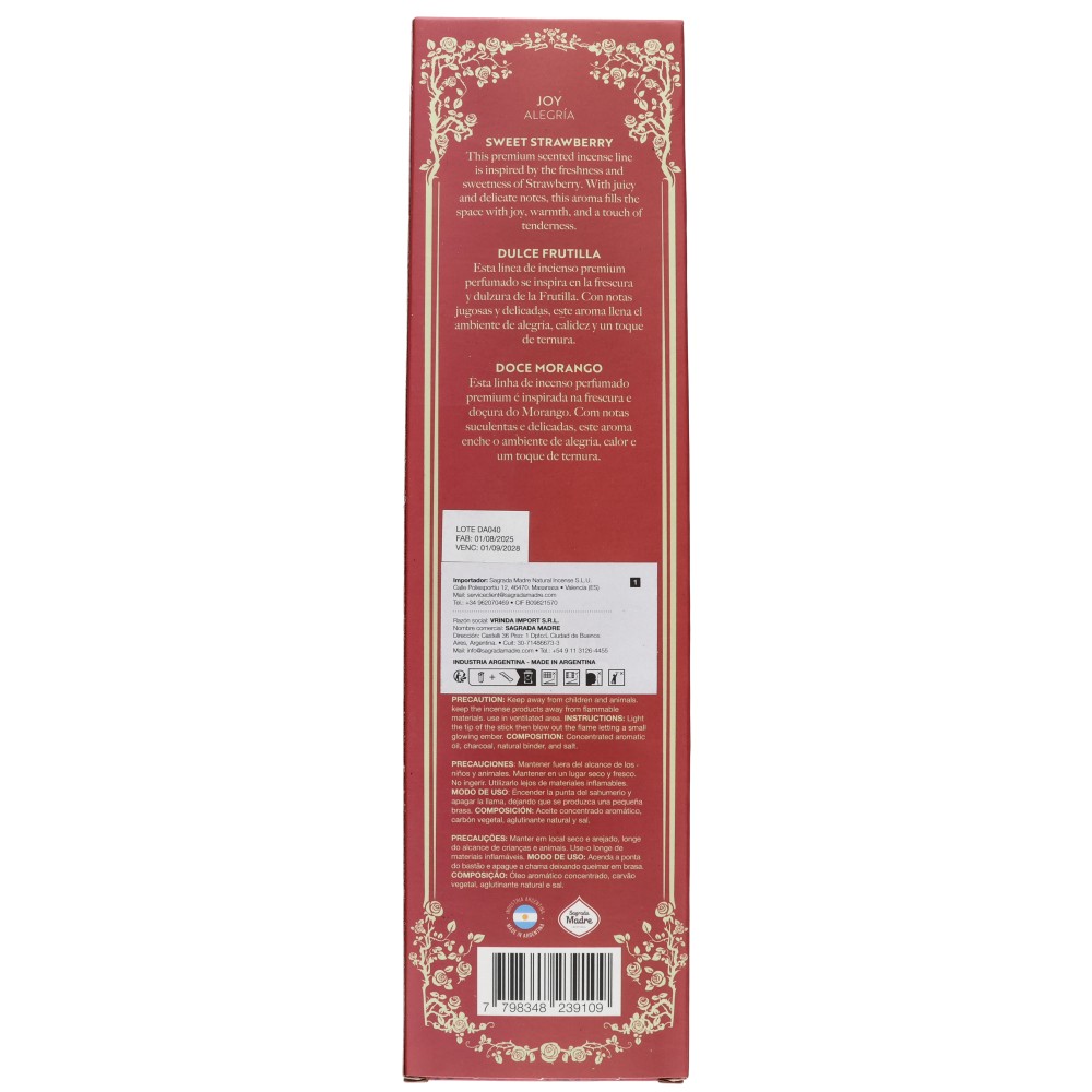Tao Perfum Sweet Strawberry incense offers a sweet and fresh fragrance, evoking the softness and charm of ripe red fruits. Perfect for filling your home with warmth, optimism, and joy.
