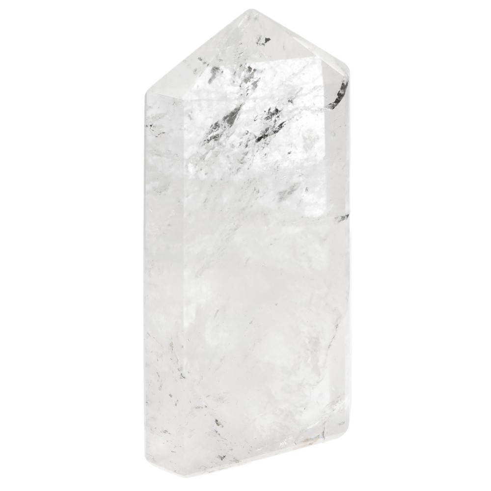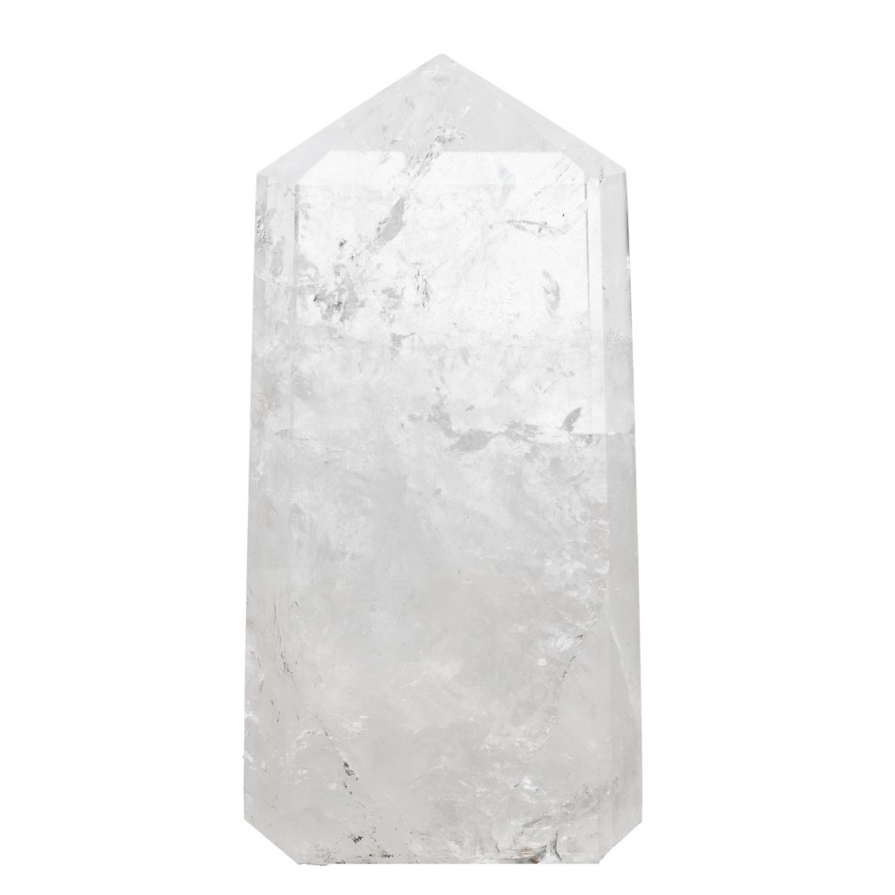 White Quartz or Transparent Quartz, also called Rock Crystal, is a variety of colorless crystalline quartz. It is composed of silicon dioxide, belongs to the silicate-tectosilicate group, and its hardness is 7 on the Mohs scale. Quartz crystals usually have the shape of a hexagonal prism with pyramidal faces at the ends. They can be found isolated in double points or in groupings forming twins, druses or geodes.