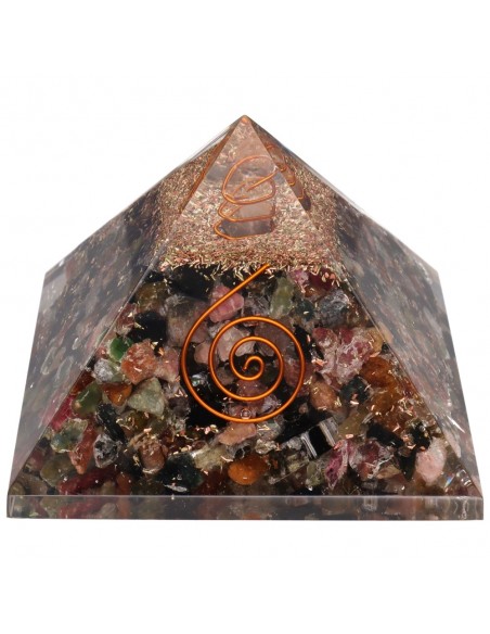 Two-color Tourmaline Pyramid in Resin with Spiral 7x7cm