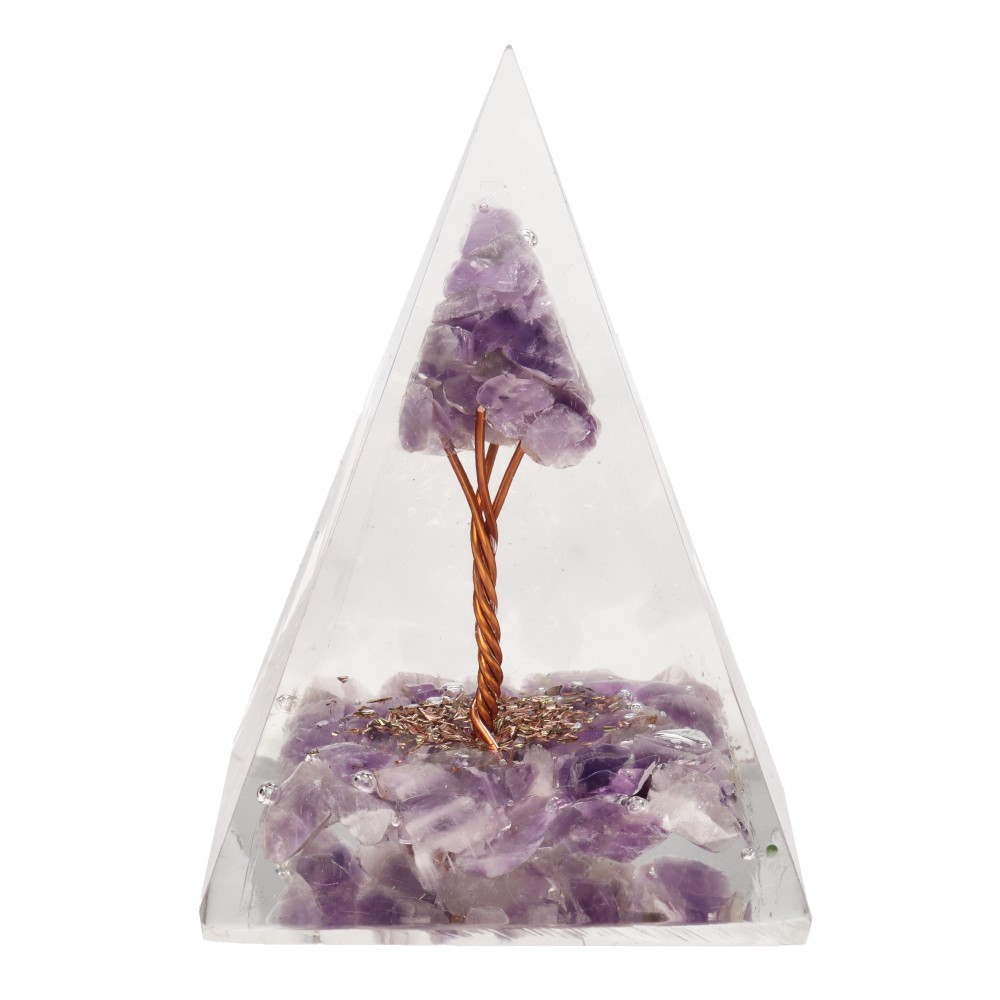 Amethyst Orogonite Pyramid in Resin with Tree 4x4cm