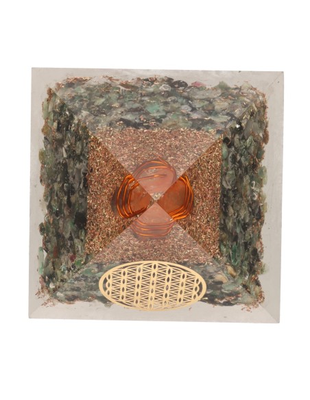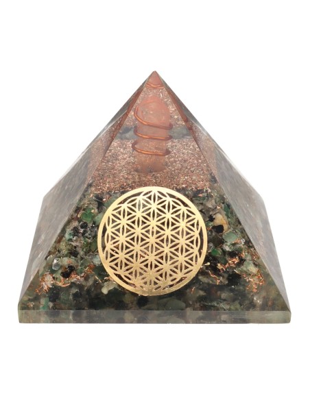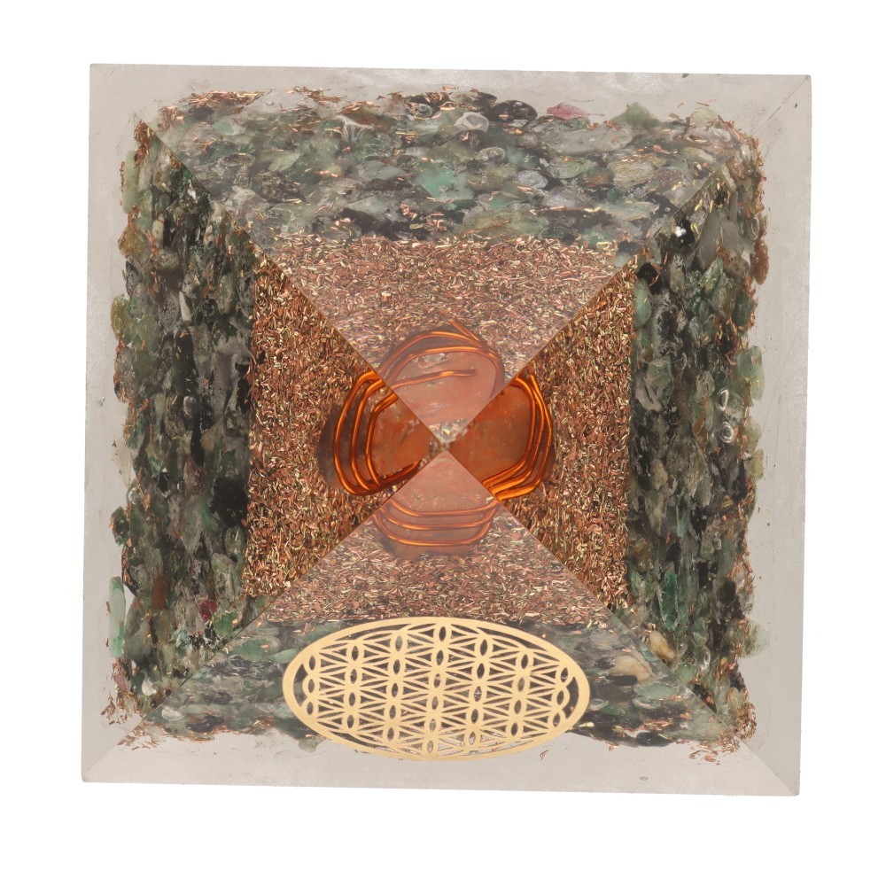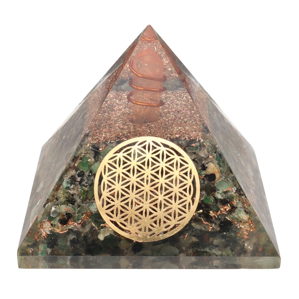 Resin Emerald Orgonite Pyramid with Flower of Life 7x7cm