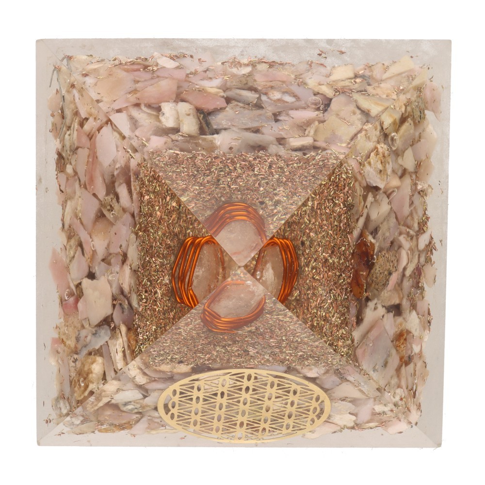 Pink Opal Resin Orgonite Pyramid with Life Flower 7x7cm