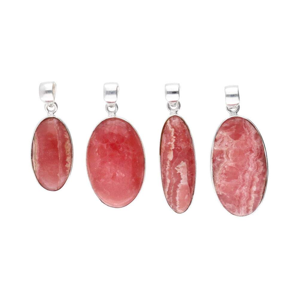 Random Oval Rhodochrosite Pendant in 925 Sterling Silver
