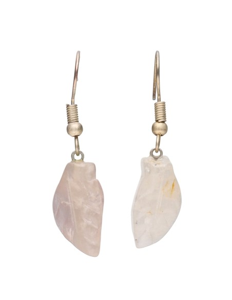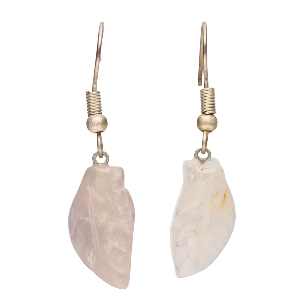 Silver Plated Leaf Rose Quartz Earrings