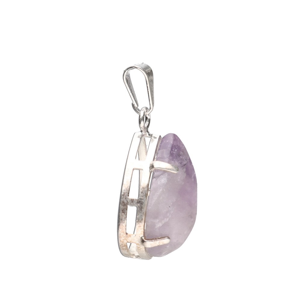 Silver Plated Crystallized Chalcedony Drop Pendant in Rough Crystals