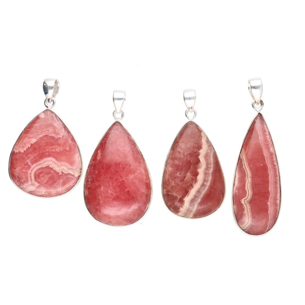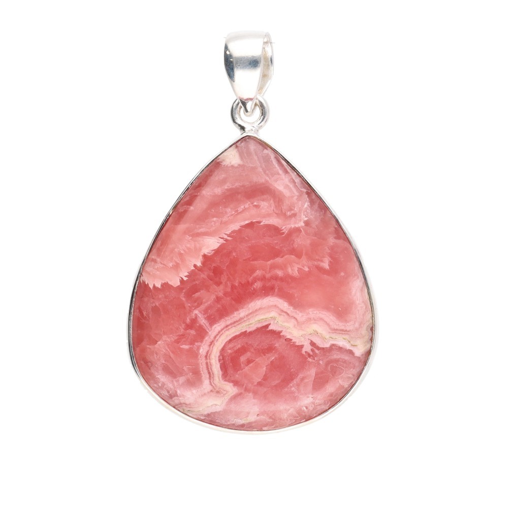 Random Rhodochrosite Drop Pendant in Sterling Silver 925