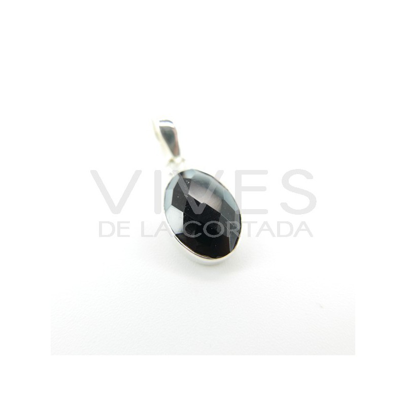 Faceted Oval Onyx Pendant - 925 Sterling Silver
