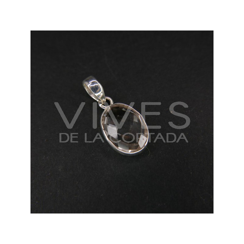 Faceted Oval White Quartz Pendant - Sterling Silver 925
