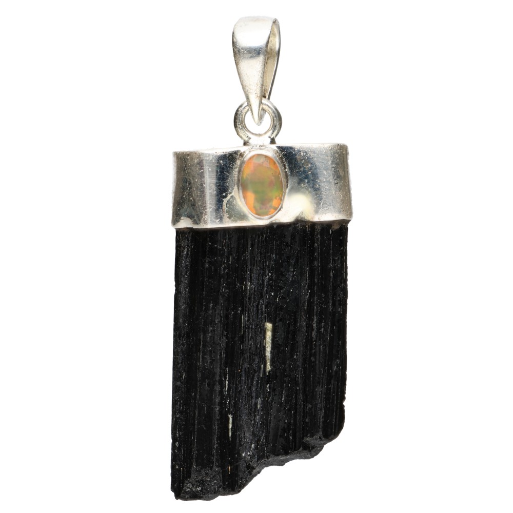 Black Tourmaline with Opal Pendant in 925 Sterling Silver (12U)