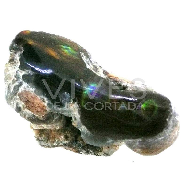 Fire agate is a microcrystalline variety of the quartz group, a type of chalcedony. There are many types of agate, its color depends on the different materials it may contain. The most abundant are gray, although they are also found in yellow, orange, white, blue and brown. Fire agate owes its color and iridescence to the reddish and brownish hematite inclusions it contains. In its natural state it usually forms inside cavities of volcanic rocks.