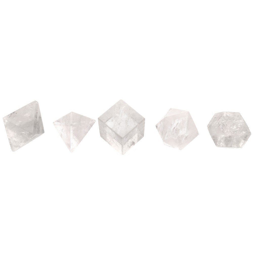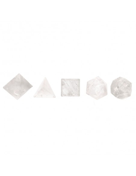 Ensemble de minéraux sculptés représentant les 5 formes/éléments platoniques :