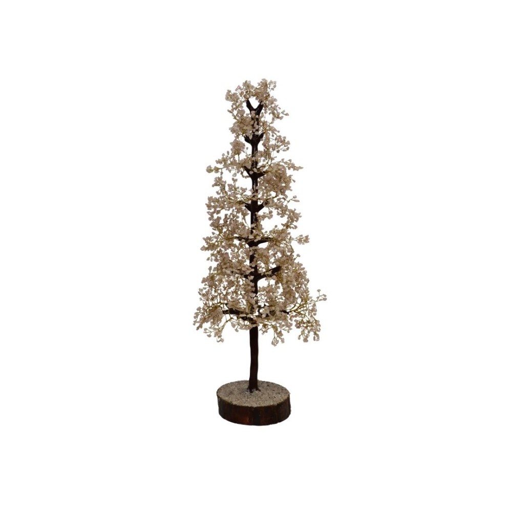 Grand arbre à quartz rose avec base en bois