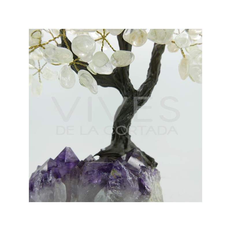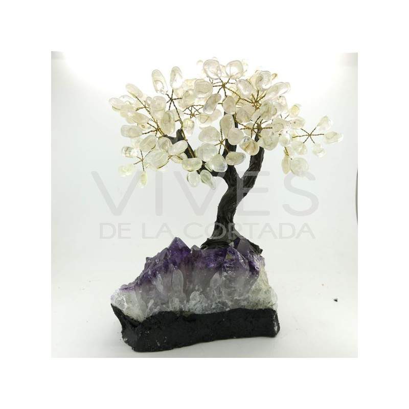 Le quartz blanc ou transparent, également appelé cristal de roche, est une variété de quartz cristallin incolore. Il est composé de dioxyde de silicium, appartient au groupe des silicates-tectosilicates et sa dureté est de 7 sur l'échelle de Mohs. Les cristaux de quartz ont généralement la forme d'un prisme hexagonal avec des faces pyramidales aux extrémités. On les trouve isolés en pointes doubles ou en amas formant des jumeaux, des druses ou des géodes.