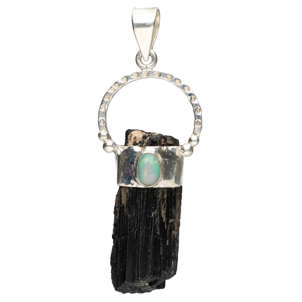 Pendentif en argent 925 avec tourmaline noire et opale (13U)