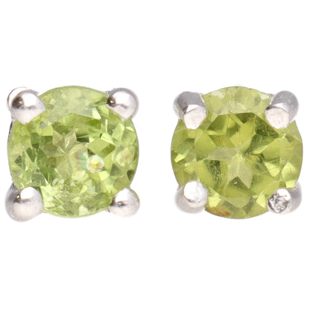 Boucle d'oreille bouton en argent 925 à péridot facetté