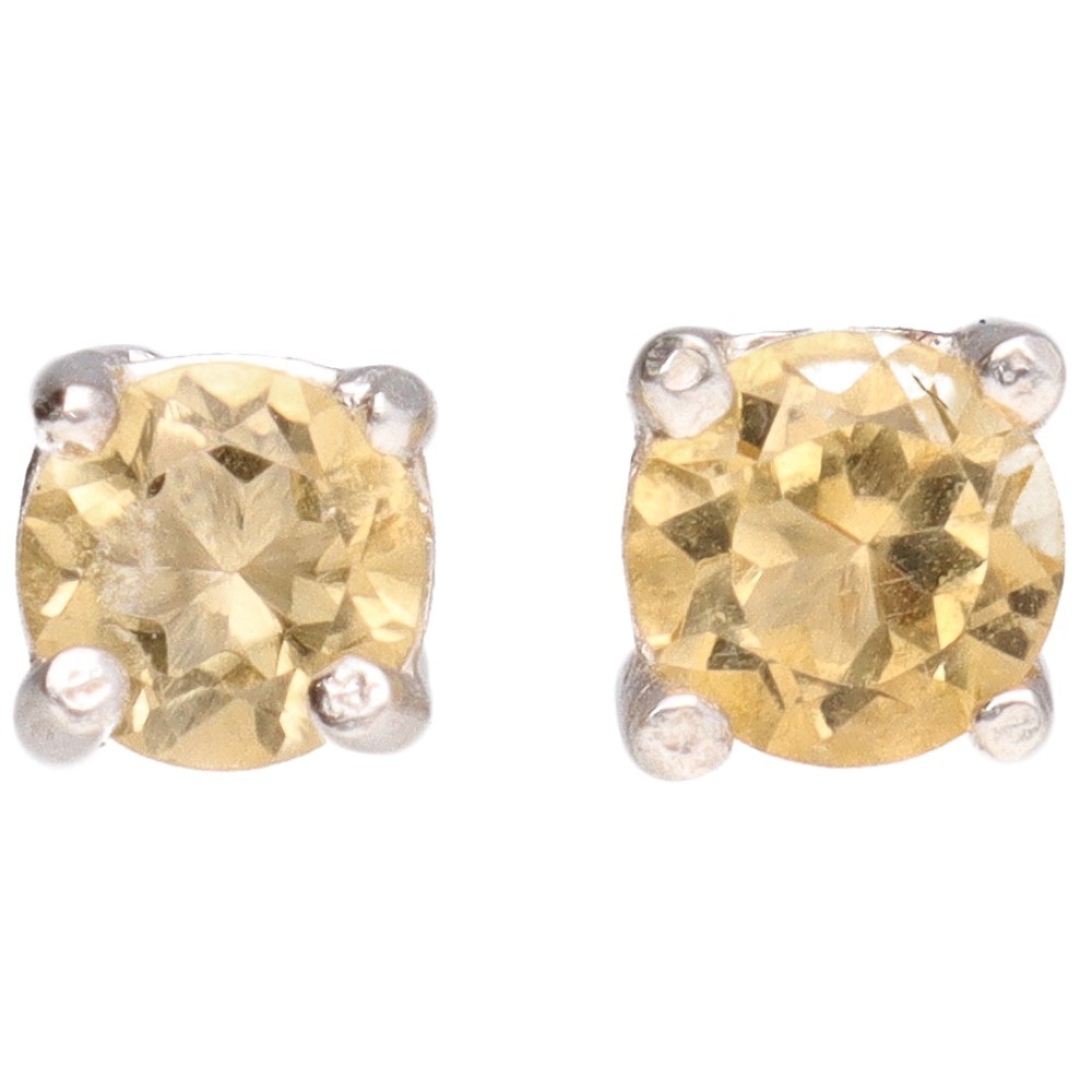 Boucles d'oreilles boutons en argent 925 avec mini citrine à facettes