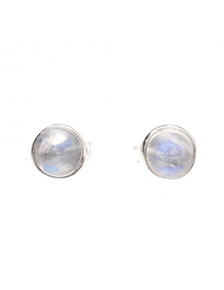 Boucles d'oreilles moyennes en argent 925 avec bouton en pierre de lune