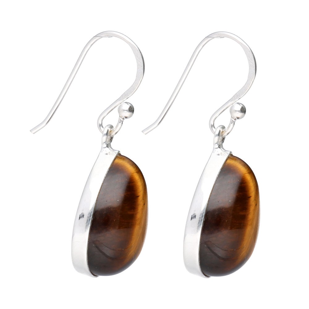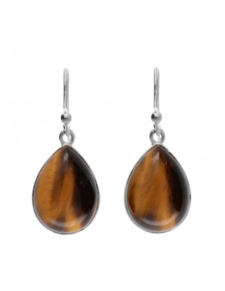 Pendants d'oreilles en œil de tigre de taille moyenne en argent 925.