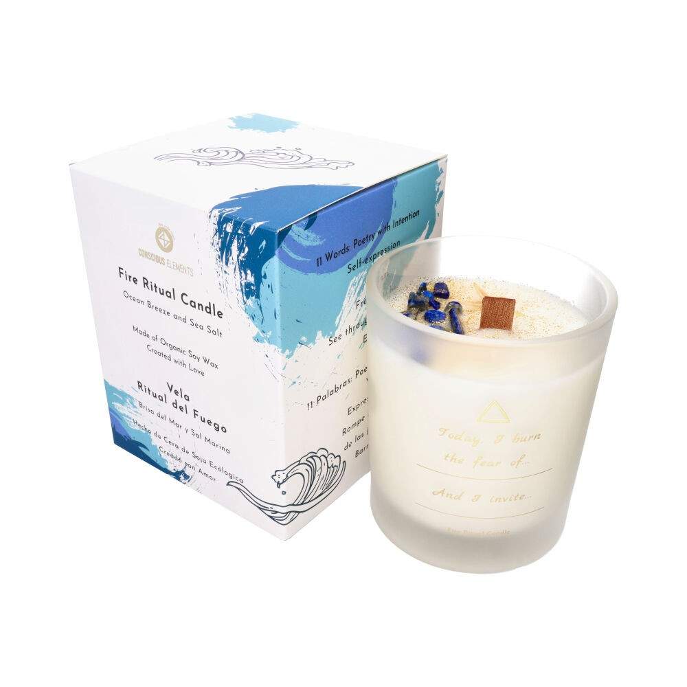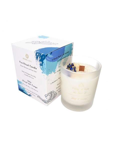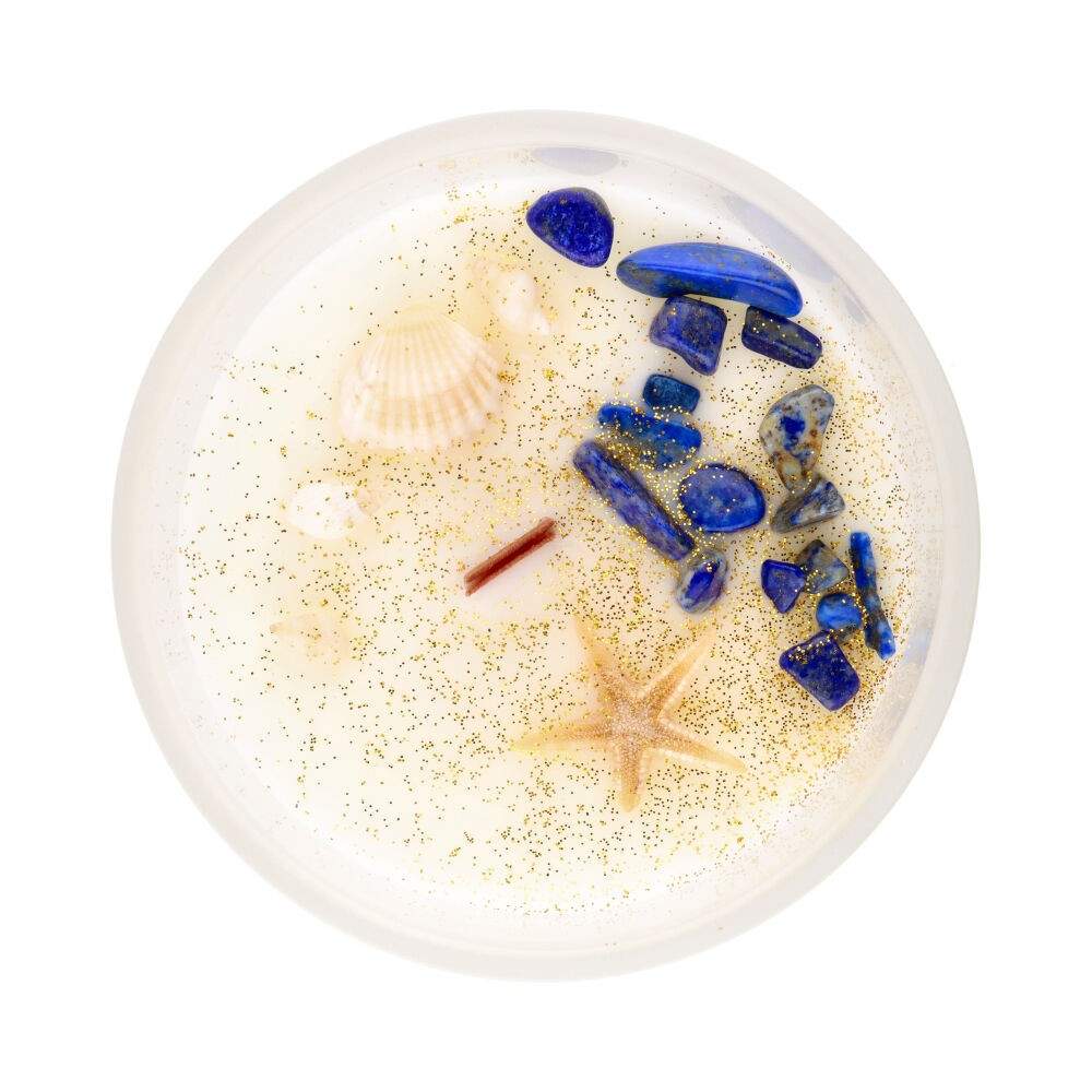 Bougie brise de mer et sel de mer avec lapis-lazuli