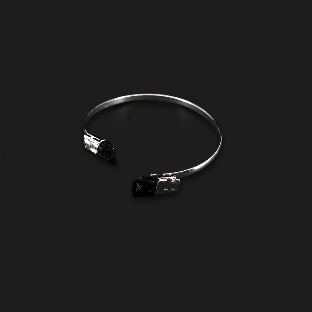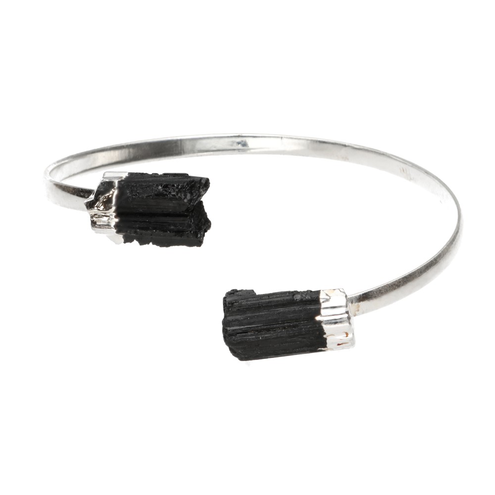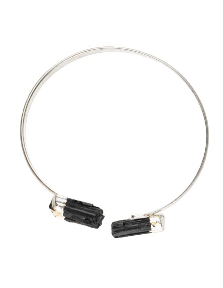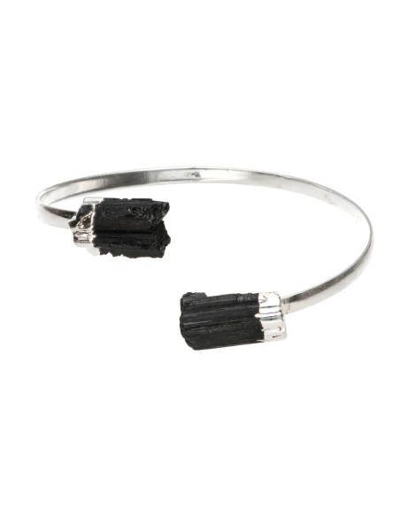 Bracelet de Tourmaline noire brute plaqué argent -B29-