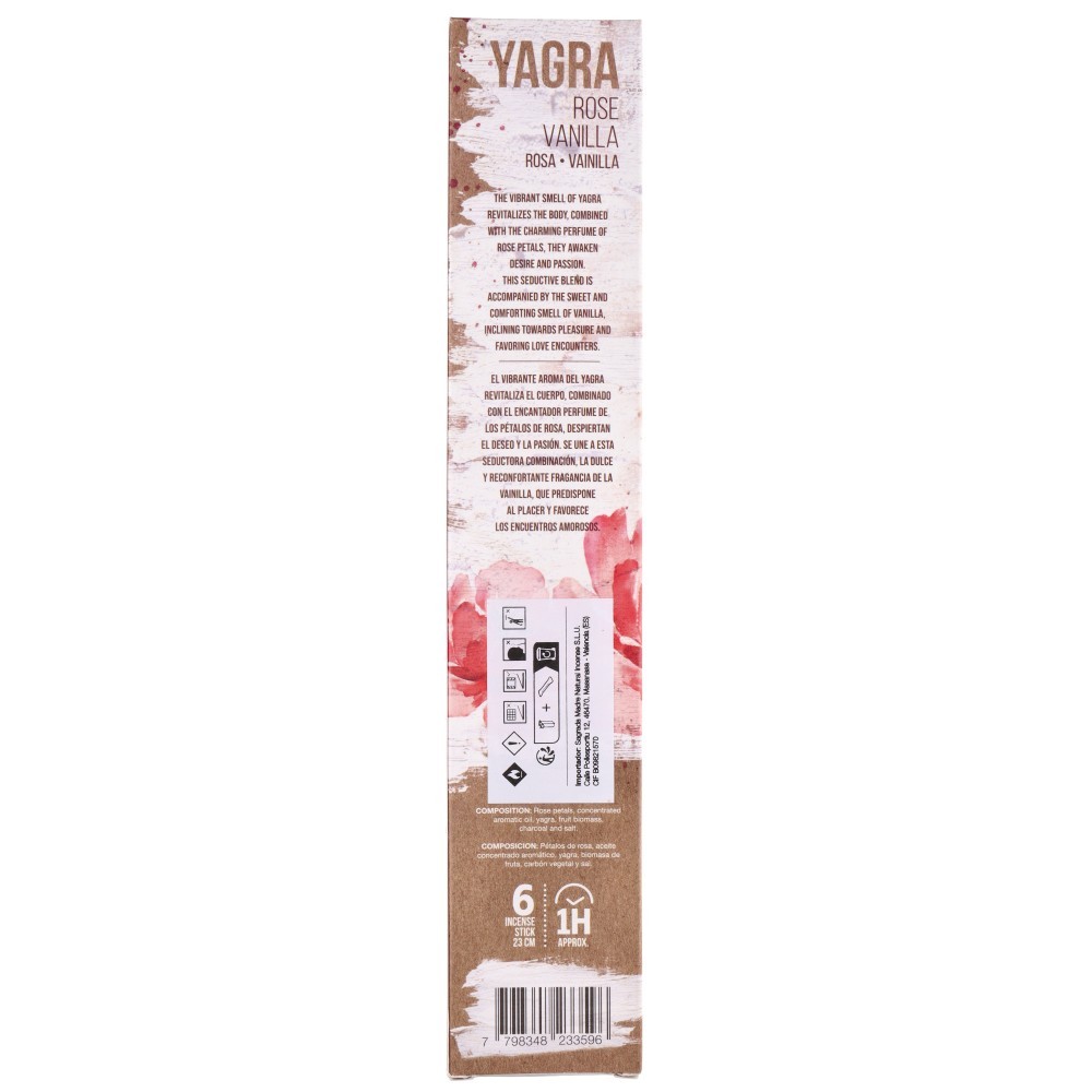 Composition : pétales de rose, huile aromatique concentrée, onagre, biomasse de fruits, charbon de bois et sel.