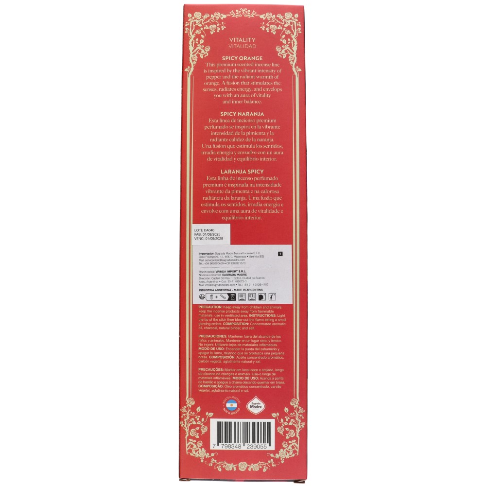 Fabriqué avec du poivre, de l'orange, du concentré d'huile aromatique, du charbon de bois, du liant naturel et du sel