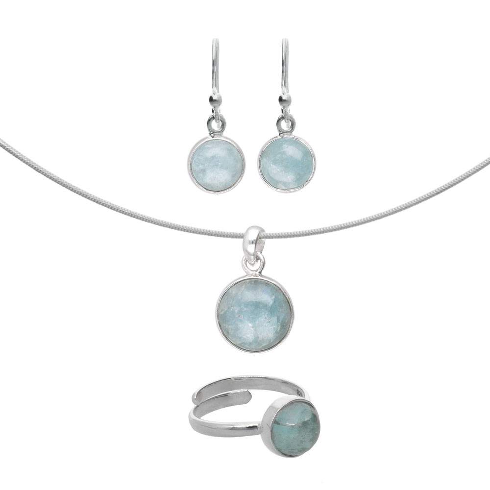 Ensemble cercle d'aigue-marine en argent sterling 925