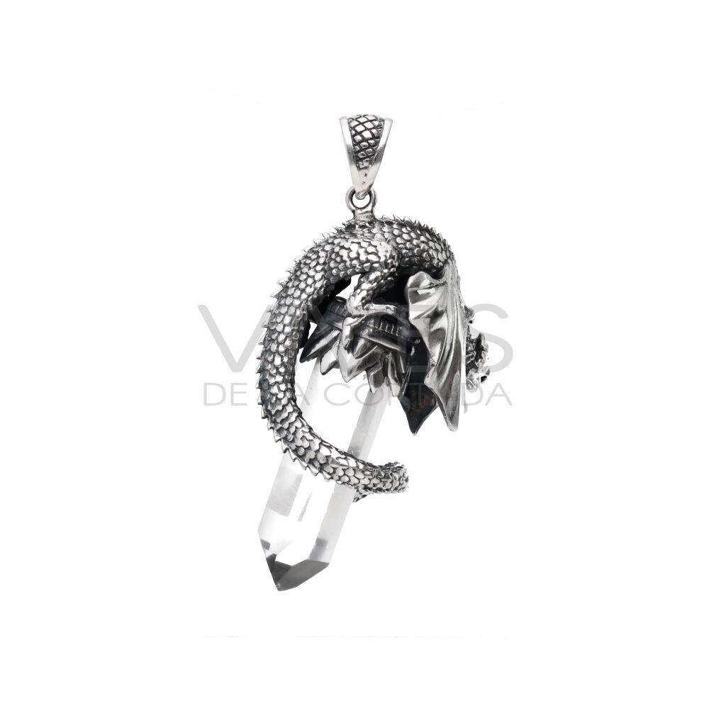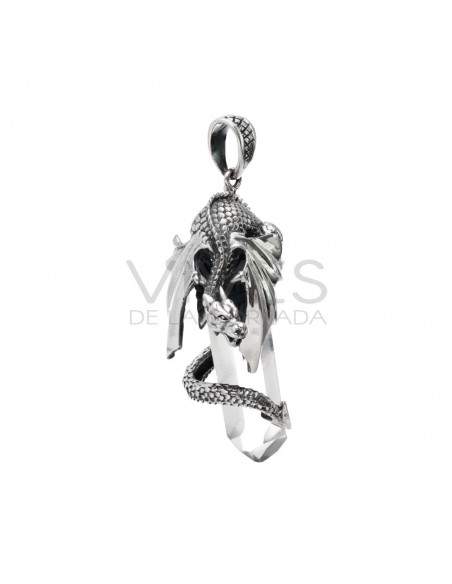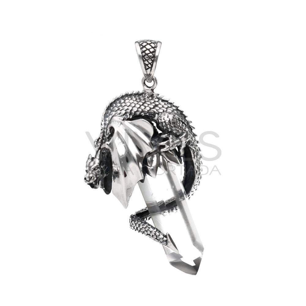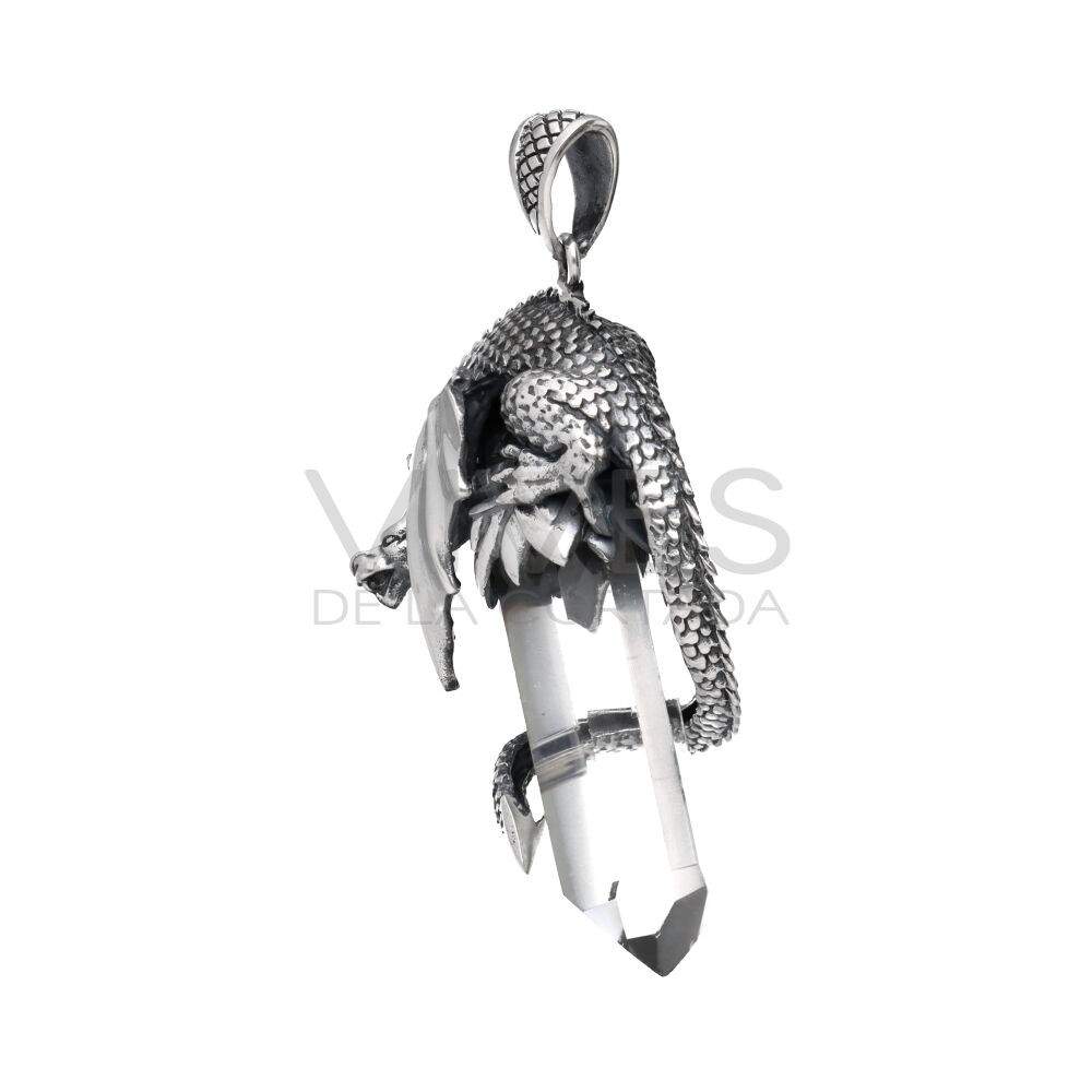 Pendentif Dragon en argent 925 avec ailes fermées en pointe de quartz