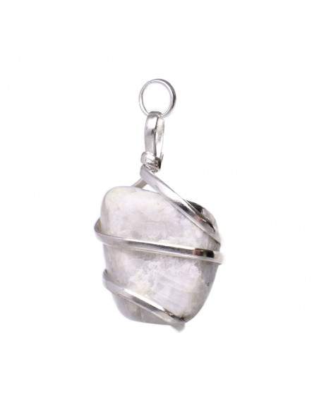 Pendentif feuille de calcédoine brute cristallisée plaqué argent