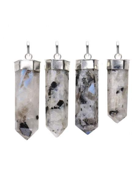 Pendentif feuille de calcédoine brute cristallisée plaqué argent