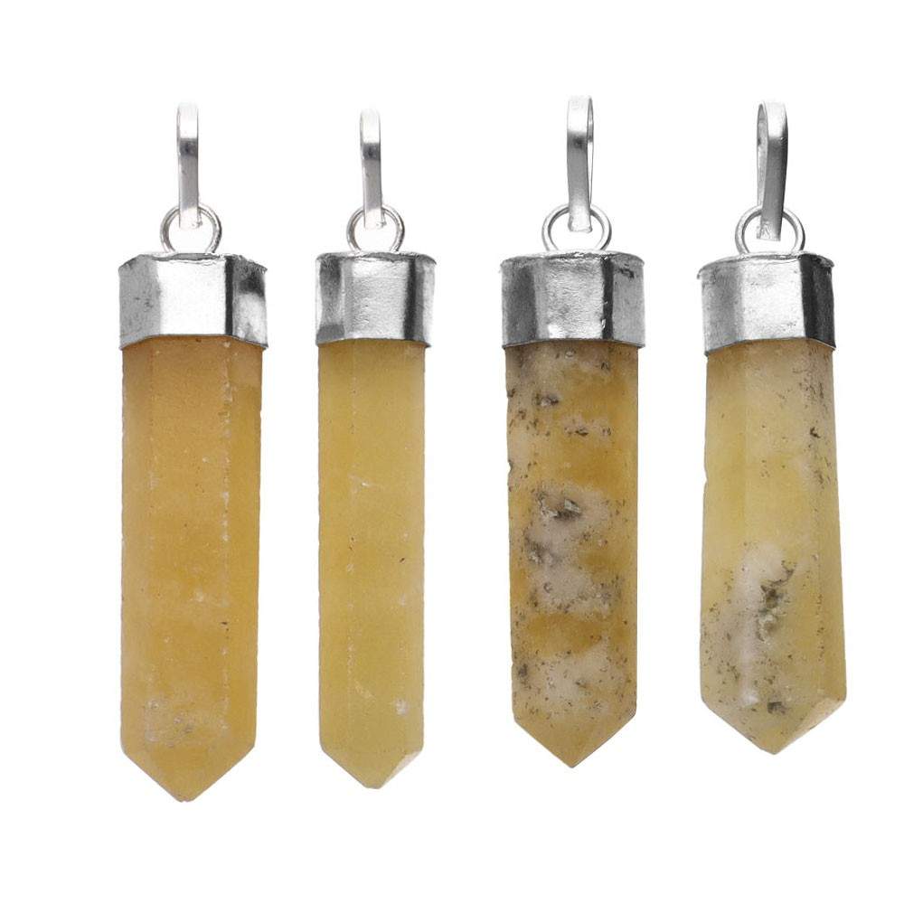 Pendentif en forme de pointe en aragonite jaune plaqué argent