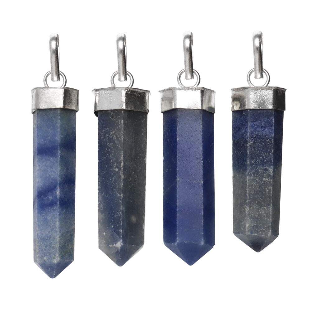 Pendentif en forme de pointe en quartz bleu plaqué argent