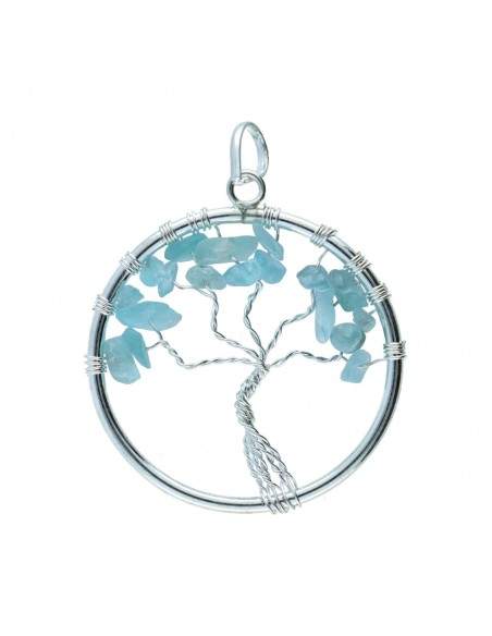 Pendentif arbre de vie avec aigue-marine plaquée argent