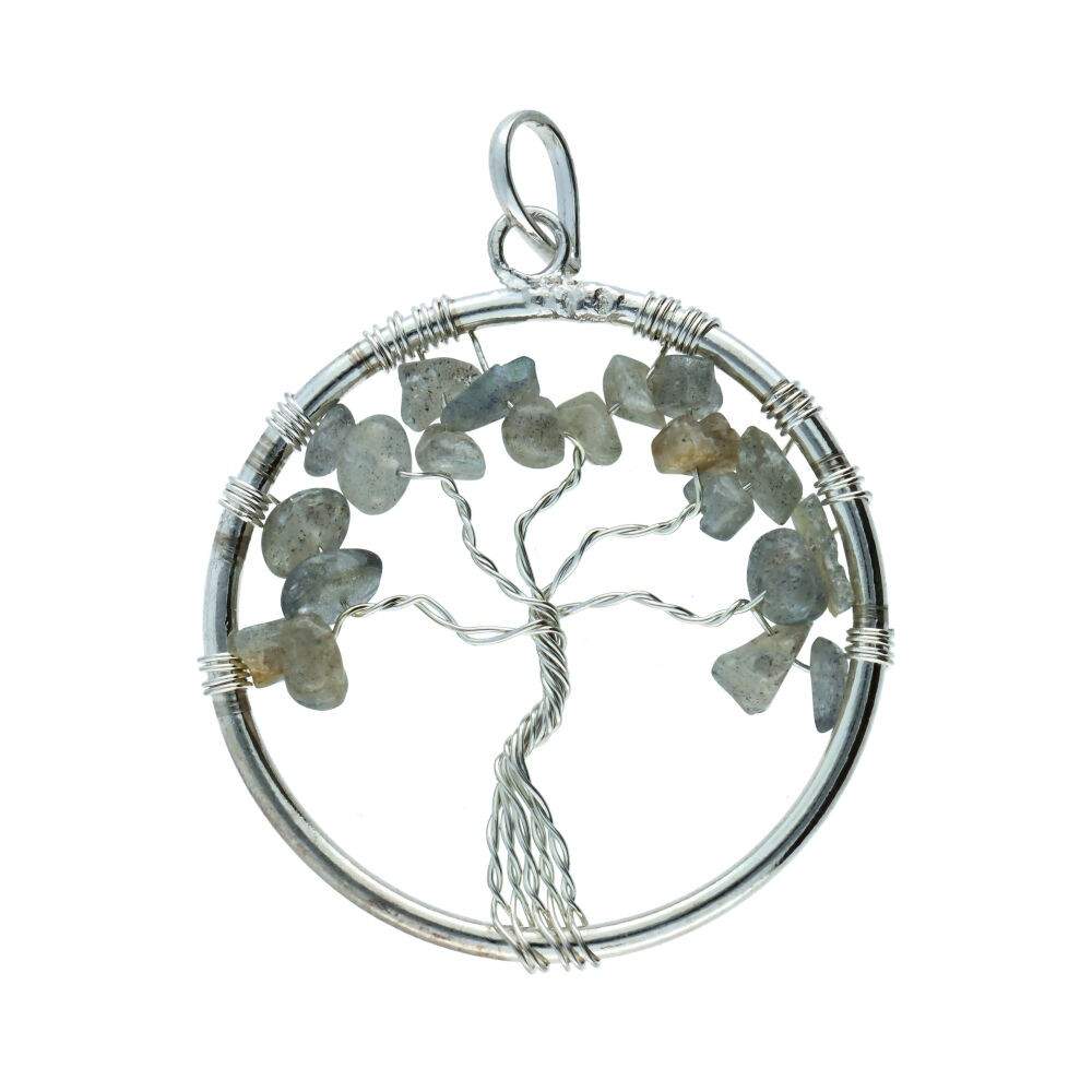 Pendentif arbre de vie avec labradorite en plaqué argent