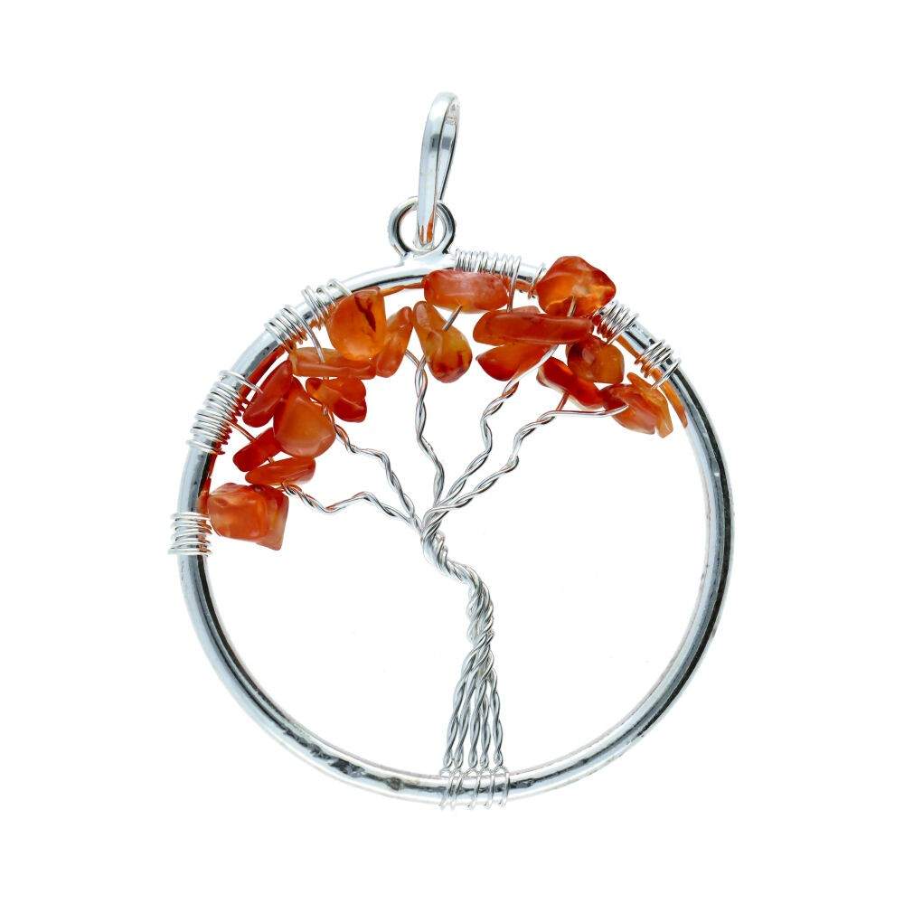 Pendentif arbre de vie avec cornaline en plaqué argent