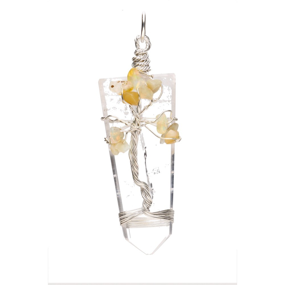 Pendentif feuille de calcédoine brute cristallisée plaqué argent