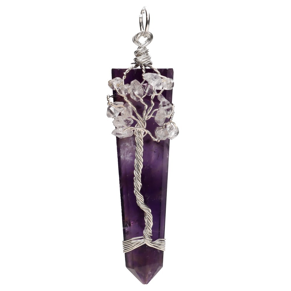 Pendentif Améthyste Flat Top avec Herkimer en plaqué argent