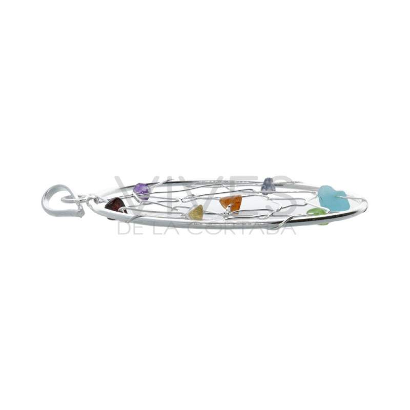 Pendentif feuille de calcédoine brute cristallisée plaqué argent