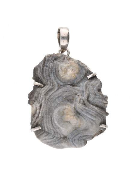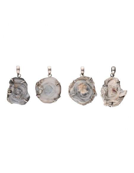 Pendentif cercle à facettes en quartz fumé - argent 925